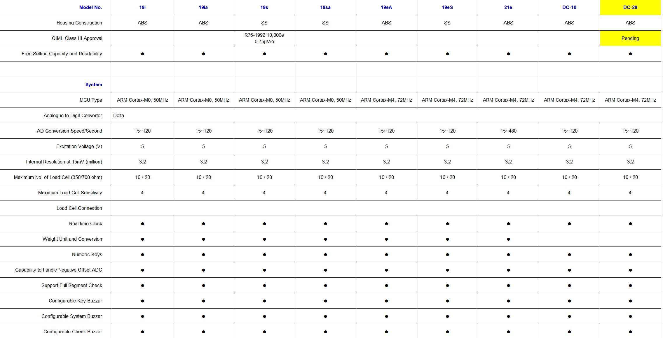 Indicators Comparison Table